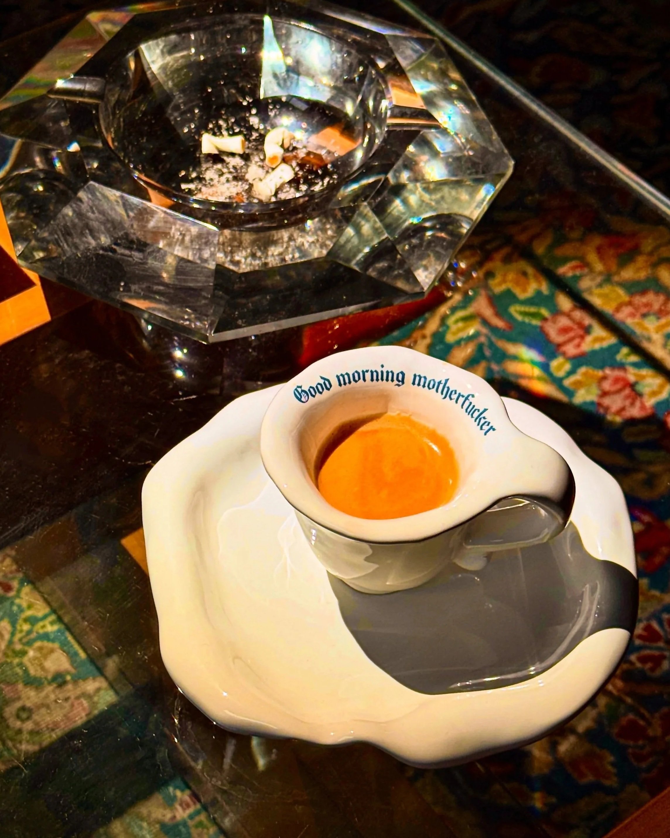 The icebreaking tableware series where mugs, plates and vases speak to you and for you through every piece, from the first espresso of the day to the dinner table.